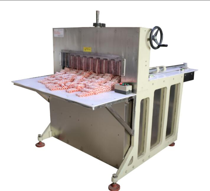 鴻祥瑞數(shù)控切片機(jī)HXR-8型一次可以切8卷(板)羊肉或肥牛,鴻祥瑞數(shù)控切片機(jī)采用西門子PLC控制,伺服電機(jī)傳動(dòng),徹底解決了機(jī)械切片機(jī)故障率高的難 題,真正意義上實(shí)現(xiàn)了全自動(dòng)化。紅外線感應(yīng)安全防護(hù)裝置(選裝),公司通過(guò)市場(chǎng)調(diào)研,特研發(fā)一次性刀具,解決部分客戶磨刀難的問(wèn)題。雙導(dǎo)向推進(jìn)器,自動(dòng)進(jìn) 退,起刀高度20CM,可以立著切肥牛板,調(diào)整厚薄不用停機(jī),可根據(jù)所需要的厚度在數(shù)控開(kāi)關(guān)自動(dòng)加減,每小時(shí)可切肉200-300公斤,工作臺(tái)采用食品專 用有機(jī)塑料板制成,保證食品安全、衛(wèi)生,肉卷無(wú)需解凍,可直接上機(jī)操作,并可切出多種卷形(粗卷、細(xì)卷、長(zhǎng)卷),成形整齊、美觀,并成排列狀,容易包裝, 加工效率高、安全、節(jié)省人工。是食品廠、大、中型牛羊肉批發(fā)商的理想選擇。