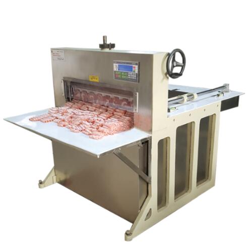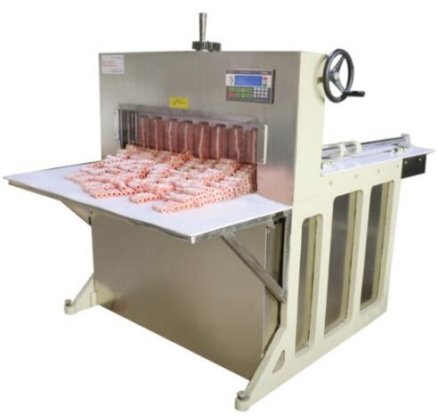 鴻祥瑞數(shù)控切片機HXR-8型一次可以切8卷(板)羊肉或肥牛,鴻祥瑞數(shù)控切片機采用西門子PLC控制,伺服電機傳動,徹底解決了機械切片機故障率高的難 題,真正意義上實現(xiàn)了全自動化。紅外線感應安全防護裝置(選裝),公司通過市場調(diào)研,特研發(fā)一次性刀具,解決部分客戶磨刀難的問題。雙導向推進器,自動進 退,起刀高度20CM,可以立著切肥牛板,調(diào)整厚薄不用停機,可根據(jù)所需要的厚度在數(shù)控開關(guān)自動加減,每小時可切肉200-300公斤,工作臺采用食品專 用有機塑料板制成,保證食品安全、衛(wèi)生,肉卷無需解凍,可直接上機操作,并可切出多種卷形(粗卷、細卷、長卷),成形整齊、美觀,并成排列狀,容易包裝, 加工效率高、安全、節(jié)省人工。是食品廠、大、中型牛羊肉批發(fā)商的理想選擇。